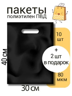Пакет 30*40, Черный, 12 шт с вырубной ручкой