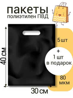 Пакет 30*40, Черный, 6 шт с вырубной ручкой