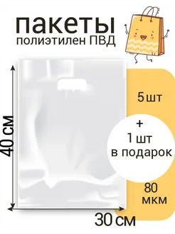Пакет 30*40, Белый, 6 шт с вырубной ручкой