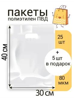 Пакет 30*40, Белый, 30 шт с вырубной ручкой