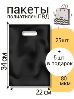 Пакет 22х34 см, черный, 30 шт с вырубной ручкой