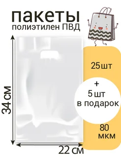 Пакет 22х34 см, белый, 30 шт с вырубной ручкой