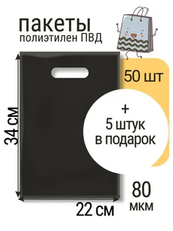 Пакет 22х34 см, черный, 55 шт с вырубной ручкой