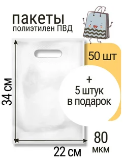 Пакет 22х34 см, белый, 55 шт с вырубной ручкой
