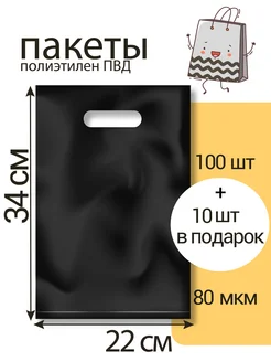 Пакет 22х34 см, черный, 110 шт с вырубной ручкой