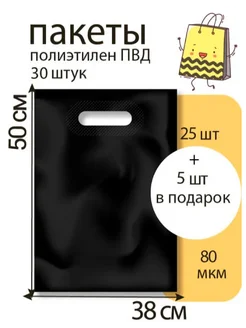Пакет 38*50, Черный, 30 шт с вырубной ручкой