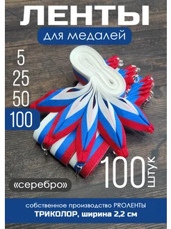 Ленты для медалей триколор 100 шт 2,2 см (серебро)