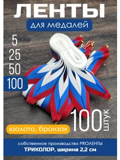 Ленты для медалей триколор 100 шт (2,4 см)
