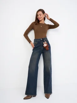 Джинсы женские с высокой посадкой трубы широкие labubu