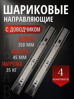 Шариковые направляющие 350 мм с доводчиком H45 4 комплекта