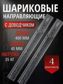 Шариковые направляющие 400 мм с доводчиком H45 4 комплекта