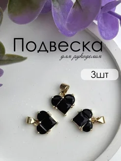 Подвески для рукоделия сердце 3 шт черный циркон золотистый