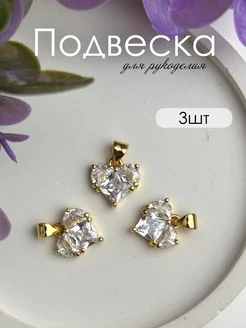 Подвески для рукоделия сердце 3 шт циркон прозрачный