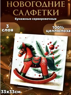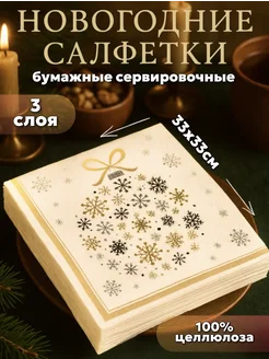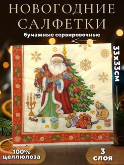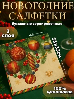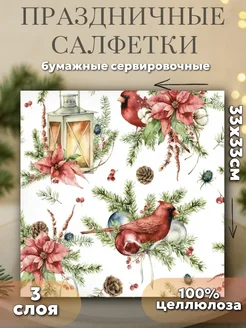Салфетки новогодние, бумажные, трех слойная 33х33 20штук