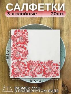 Бумажные праздничные салфетки с узором 33х33 20штук