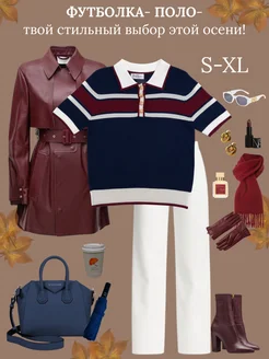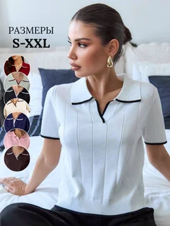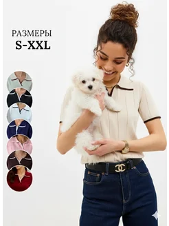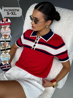 Футболка поло вязаная майка с коротким рукавом в полоску