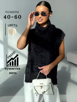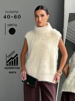 Жилетка пушистая вязаная с воротом оверсайз