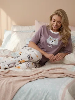 Пижама женская со штанами хлопок домашний костюм