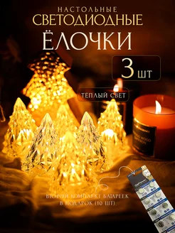Новогодние светильники настольные елки для декора набор 3 шт