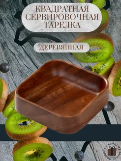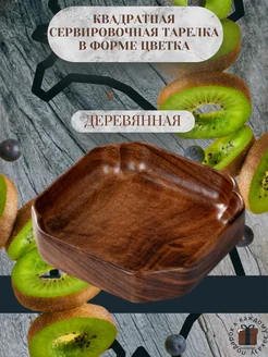 Квадратная сервировочная тарелка в форме цветка деревянная