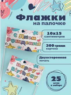 Флажки на палочке "С днем рождения!"