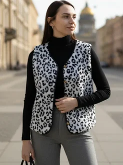 Жилетка леопард черно белая
