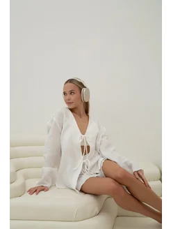 Пижамная рубашка на завязках из жатого муслина