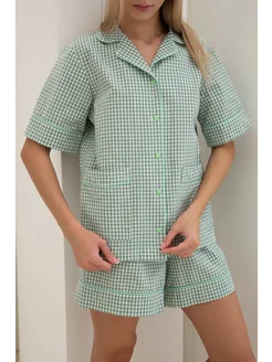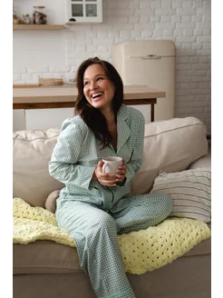 Пижама рубашка и брюки из хлопка в мятную клетку