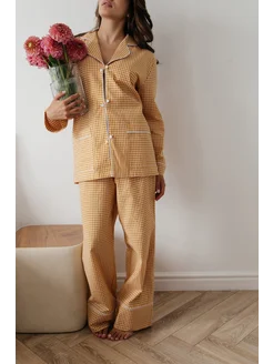 Пижама рубашка и брюки из хлопка в желтую клетку