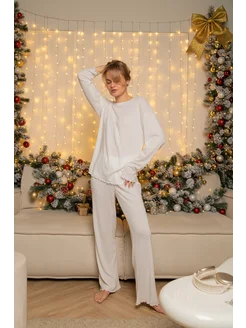 Пижама рубашка со штанами из хлопка в мятную клетку
