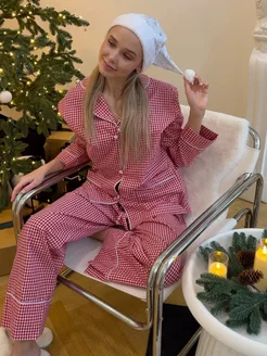 Новогодняя пижама рубашка и штаны из хлопка в красную клетку