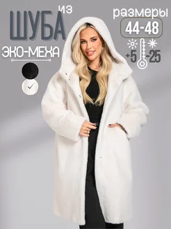 Шуба искусственная с капюшоном экошуба зимняя под норку