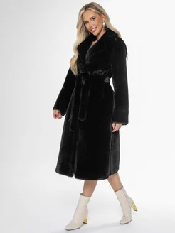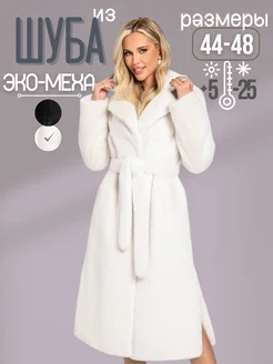 Шуба искусственная с поясом длинная экошуба зимняя под норку