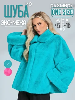 Шуба искусственная короткая экошуба зимняя бирюзовая
