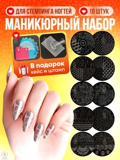 Маникюрный набор для стемпинга ногтей, пластины№2, Малиновый