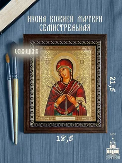 Икона Божией Матери Семистрельная освященная в раме 18х21