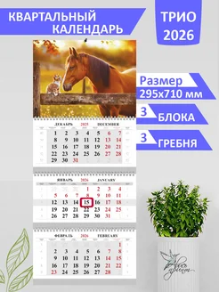 Календарь 2026 настенный трехблочный квартальный Лошадь