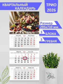 Календарь 2026 настенный трехблочный квартальный Натюрморт