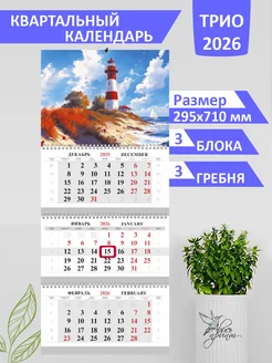 Календарь 2026 настенный трехблочный квартальный Море Маяк