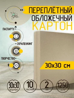 Картон 2 мм переплетный 30*30 см 10 шт для скрапбукинга
