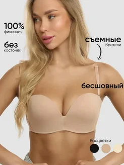 Бюстгальтер бандо без лямок и косточек бесшовный с пушап