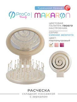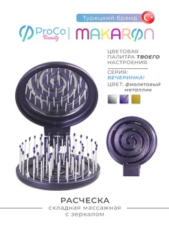MAKARON (МАКАРОН) Расческа складная массажная с зеркалом
