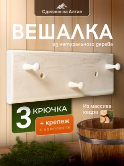Вешалка деревянная настенная с крючками для бани