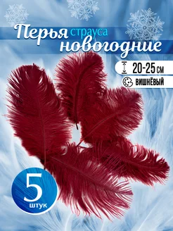 Перья страуса 200-250 мм, вишневый, 5 штук