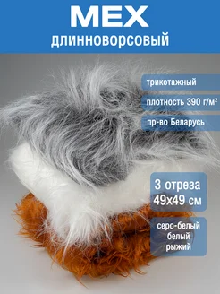 Трикотажный мех длинноворсовый 3 шт. 49х49см сер. бел. рыжый