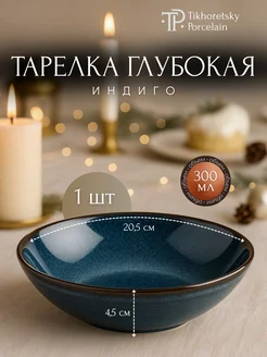 Тарелка глубокая суповая фарфор 20 см Премиум "Индиго"