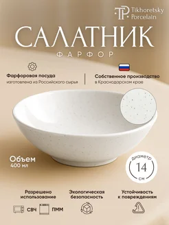 Салатник 14 см фарфор "Бежевый в крапинку"