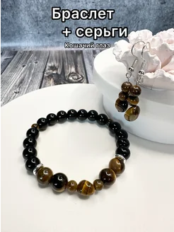 Браслет и серьги Чёрный Агат и тигровый глаз