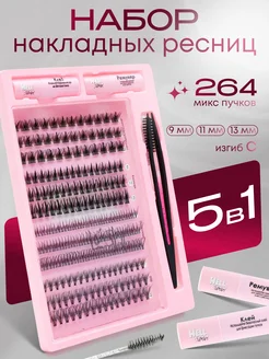 ресницы накладные пучки с клеем набор изгиб С 9, 11, 13 мм