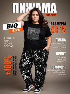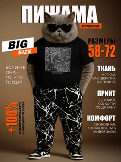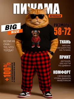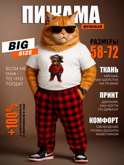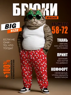 Брюки пижамные домашние хлопок большие размеры новогодние